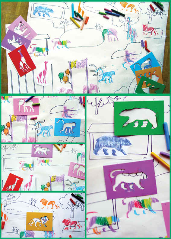 La última actividad propuesta fue pintar los animales de la granja que se mencionan en la canción. Para eso utilizamos pintura de dedos y plantillas. Pero… La parte más divertida de la actividad fue seguramente intentar lavarnos las manos en los aspersores del jardín sin quedarnos completamente mojados 😉
